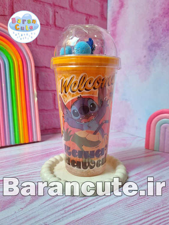 لیوان اسموتی وارداتی چراغ دار طرح استیج نارنجی