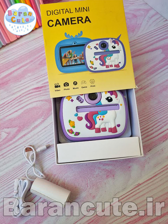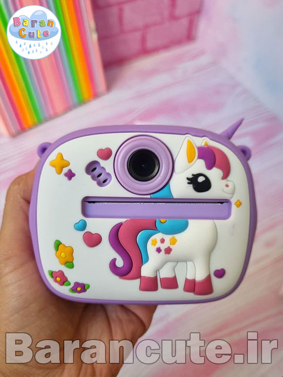 دوربین های بچگانه به دلیل چاپ سریع و کیفیت بالا بسیار برای کودکان جذاب و محبوب بوده است مدل موجود در فروشگاه بسیار حرفه ای در چاپ بوده و علاوه بر گرفتن عکس و ویدئو دارای گیم ، پخش کننده موسیقی و فیلم و دوربین سلفی نیز می باشد دوربین بچگانه یونیکورن و دایناسور دارای محافظ سیلیکونی دور تا دور برای محافظت بیشتر از دوربین است که هنگام ضربه آسیبی به خود دوربین وارد نشود این دوربین دارای مموری کارت حافظه 128 گیگابایت هست برای ذخیره بازی و عکس ها همچنین دارای رزولوشن بسیار بالا برای گرفتن عکس و ویدیو می باشد .