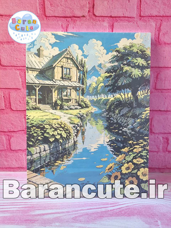 نقاشی آبرنگی بوم دار با پالت رنگی سایز بزرگ 30 در 40 طرح کلبه