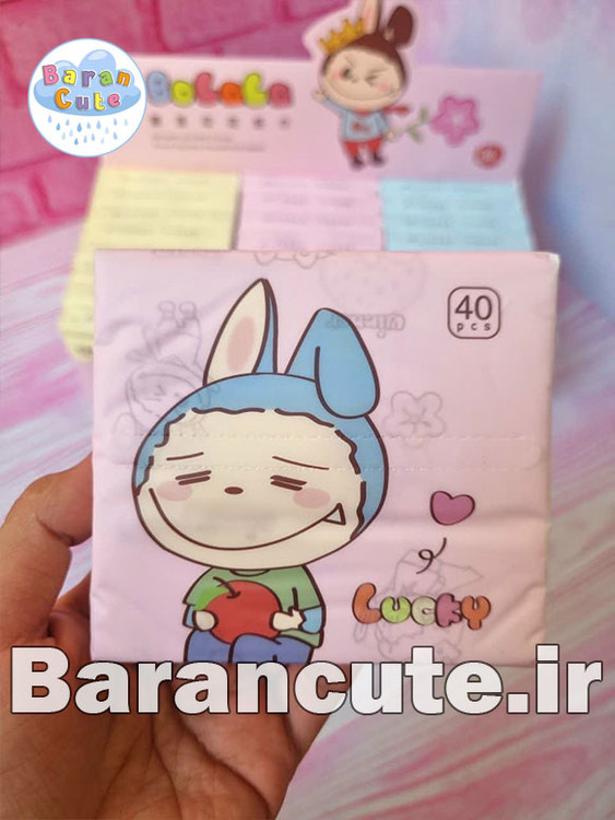 دستمال جیبی فانتزی طرحدار 40 عددی سایز بزرگ طرح لبوبو صورتی