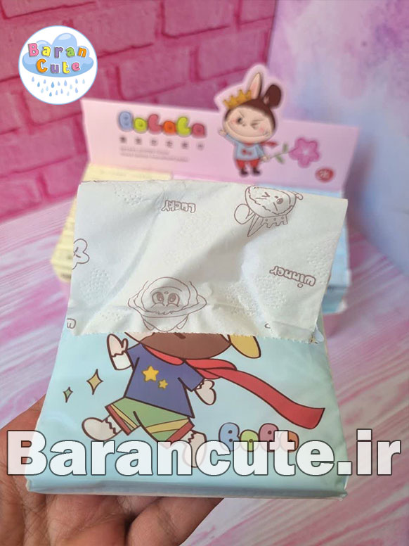 دستمال جیبی فانتزی طرحدار 40 عددی سایز بزرگ طرح لبوبو صورتی