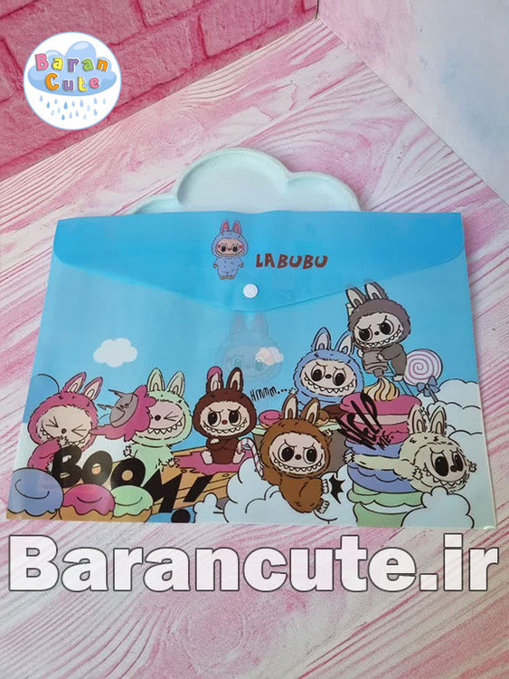 پوشه دکمه دار طرح دار فانتزی a4 طرح لبوبو آبی