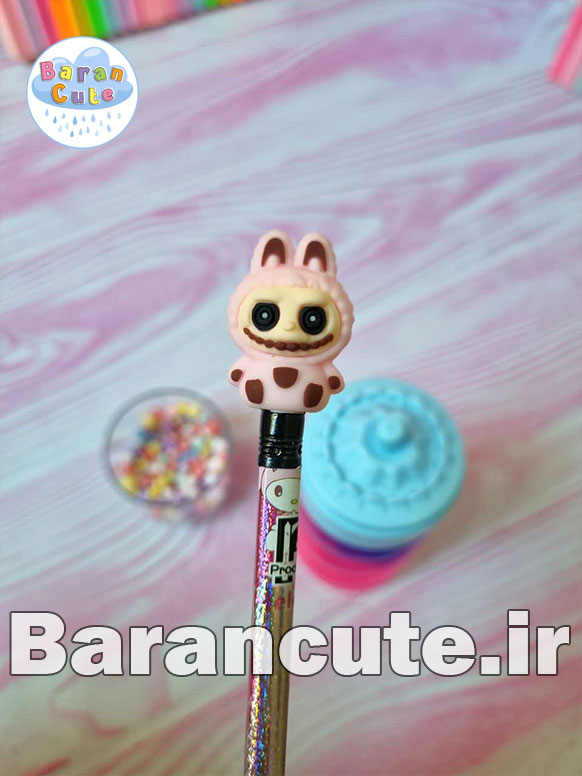 عروسک روی درب سرمدادی هست و جدا قابل استفاده هست و قابل تعویض با عروسکی دیگر